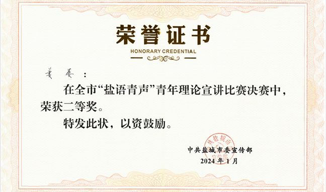 集團(tuán)職工獲全市“鹽語(yǔ)青聲”青年理論宣講比賽二等獎(jiǎng)